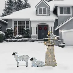 National Tree Company Mixed Greens And White Flowers Christmas Arrangement With Wood Box Base, 23 In