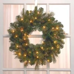 National Tree Company 30″ Frosted Colonial Fir Wreath With Dual Color® LED Cosmic Lights®