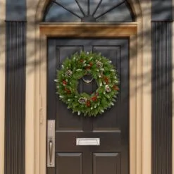 National Tree Company 24″ Rural Homestead Wreath With LED Lights