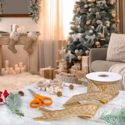 National Tree Company 2.5″ HGTV Home Collection Dupioni Gold Beaded Ribbon
