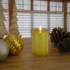 National Tree Company 3×7 HGTV Home Collection Flameless Georgetown Pillar Candle, Gold