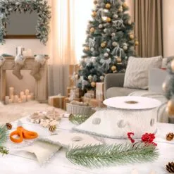 National Tree Company 3″ HGTV Home Collection Dupioni Button Ribbon, White