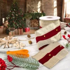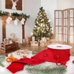 National Tree Company 3″ HGTV Home Collection Dupioni Button Ribbon, Red
