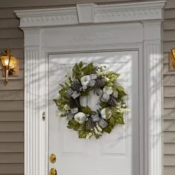 18″ Hanging Basket with Ivy Leaves, 3 Sunflowers, 3 Cones, 3 Berries, 3 Gourds & 1 Pumpkin