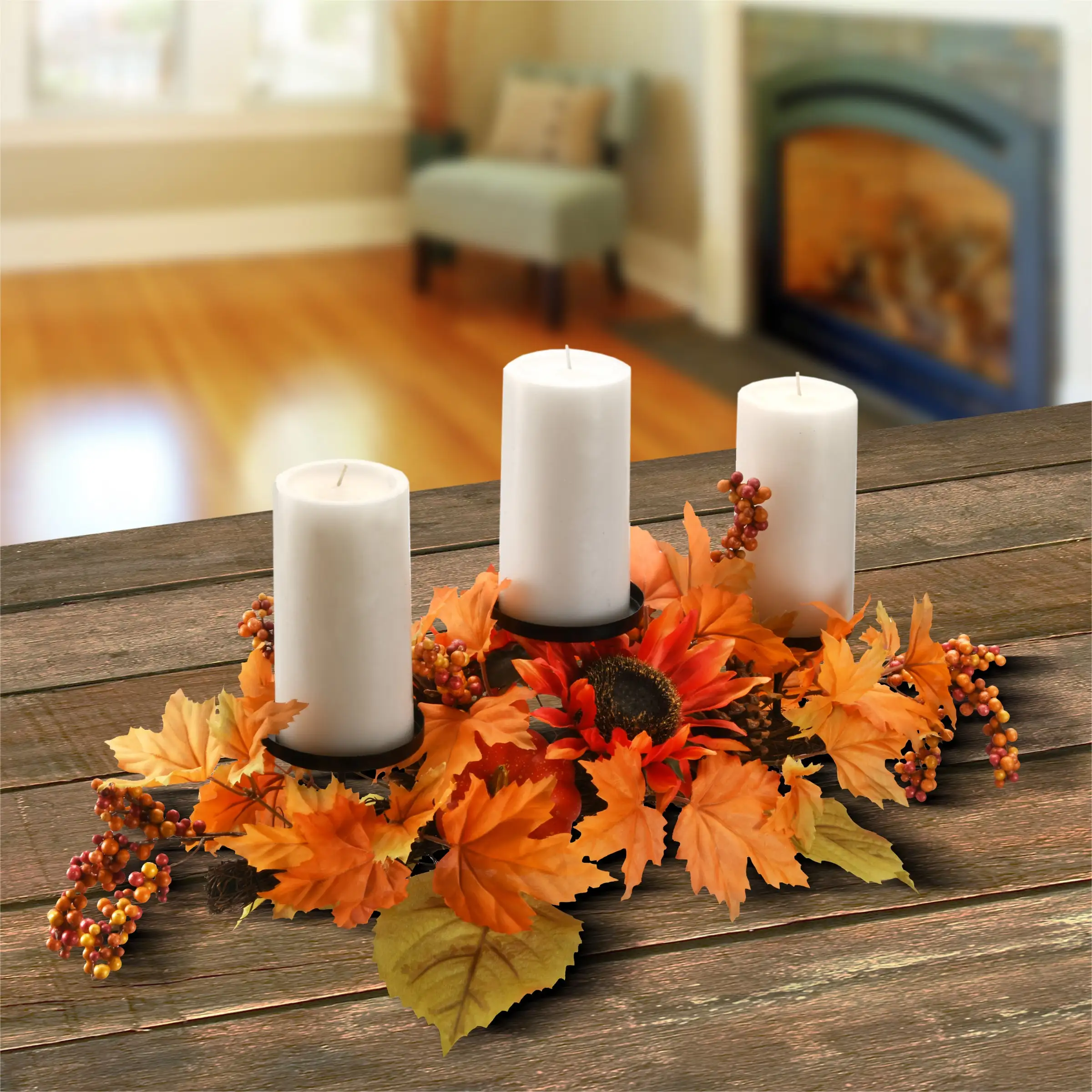 - Place on a mantle or table inside your home as a charming autumn centerpiece decoration.