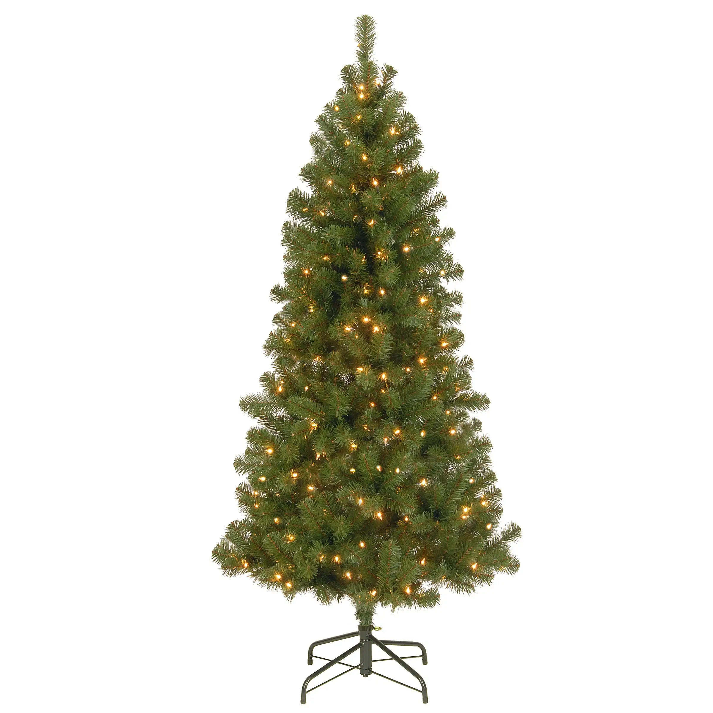Transform your home into a winter wonderland with National Tree Company’s Pre-Lit Artificial Christmas Tree. This majestic Canadian Fir Grande tree is 7 feet tall and 42 inches in diameter at the bottom, giving the tree a wide profile. Friends and family alike will marvel at how the tree closely mimics those outside. Made to look and feel lifelike, the stunning realism of the tree is defined by its close attention to detail, featuring hundreds of individually crafted branch tips that make up the wide, full-bodied branches that create space for your lights and ornaments. The tree is designed with a hinged branch system that allows the branches to swing down for a quick and simple set-up and fold back in for easy storage. Set aside 45-60 minutes after assembly to properly shape the tree by peeling back the branches and pulling the tips apart to give the branches a more full-bodied look. This fantastically festive tree is strung with 350 white UL lights prior to packaging and includes a sturdy, metal base for a more convenient setup. The lights operate individually, so if the bulb lens has not been cracked or broken, the light set will continue to illuminate except for any individual bulbs that are not working. Before dressing the tree in twinkling lights and glistening ornaments, consider placing it in a living room or dining area where it can be viewed from multiple angles and does not block any entryways. Constructed with sturdy, high quality materials and hypo-allergenic, fire-resistant needles, this tree is built to bring holiday cheer for years to come. At National Tree Company, we strive to create high quality Christmas decorations to help you transform your home so you can keep making every holiday moment magical.